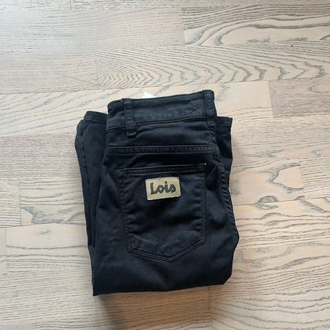 Lois Raval bukse i størrelse XXS (24"/L32). Oppleves liten og mer som 24/30. Buksen er hvit og har deilig mykt stoff. Modellen er «Raval Super High Rise Flare», som betyr høy midje og utsvingte ben. Passer som hverdagsbukse eller til enklere penere antrekk der en hvit, figurnær bukse med sleng ønskes.