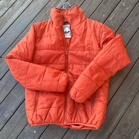 Kul tynn dynejakke fra SouthWest. Damemodell str.L. Fin på vår og høst eller som mellomlag på kalde vinterdager. Brent orange farge.