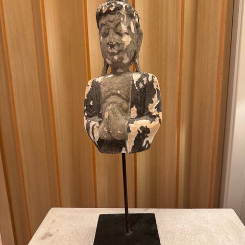 Velsignet og kjøpt i det store tempelet i Bangkok desember 2003. Buddha-figur i tre.