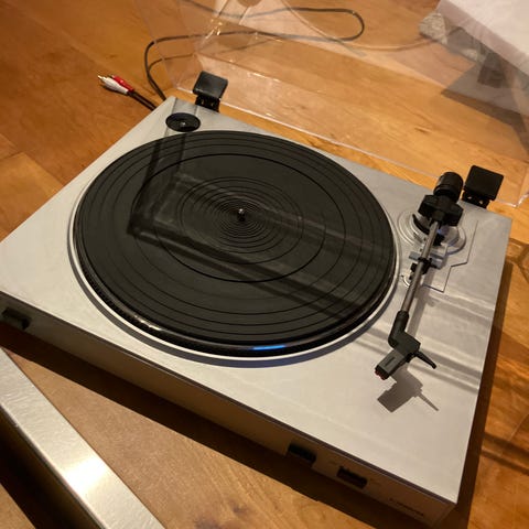 Det følger med analog til digital converter for avspilling med optisk kabel. Og Pink Floyd plate, Dark side of the Moon.