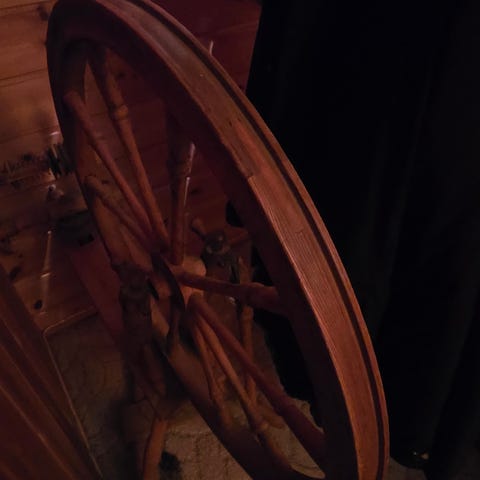 Glassbord rundt med motiv av brønn