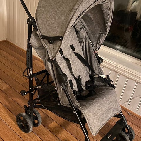 Vi har i hovedsak bruk den på ferie da den tar liten plass, lett å trille og siden bakveggen kan åpnes gir det god lufting på varme dager. Kalesjen kan trekkes ut så den gir god solkjerming.