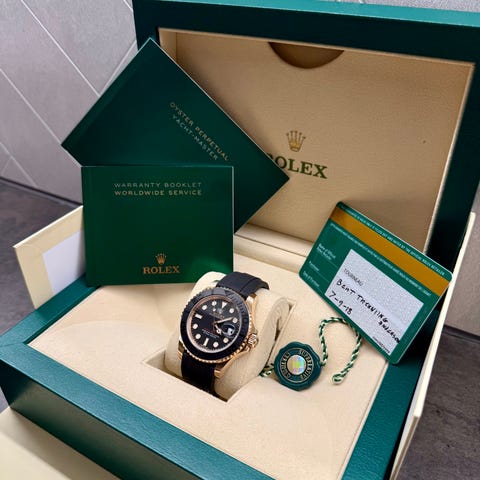 Rolex Yacht-Master 116622. 40mm oystersteel og platinum med blå skive. Urverk. 3135 med 48 timer gangreserve. Kjøpt ny hos Lervik ur i Haugesund desember 2012. Komplett sett og service utført i 2026 til 10500.- og kvittering følger selvfølgelig med. Klokken har aldri blitt polert. Jeg er eier nummer 3 for de som er interessert i det. Tilstanden er veldig pen men med hearlines, ingen hakk eller dings. INGEN BYTTER. Mange gode referanser her og på diverse klokke forum. Penger på konto før overlevering og kontrakt med bank id vil bli brukt. Ta gjerne kontakt for mer informasjon eller bilder.
