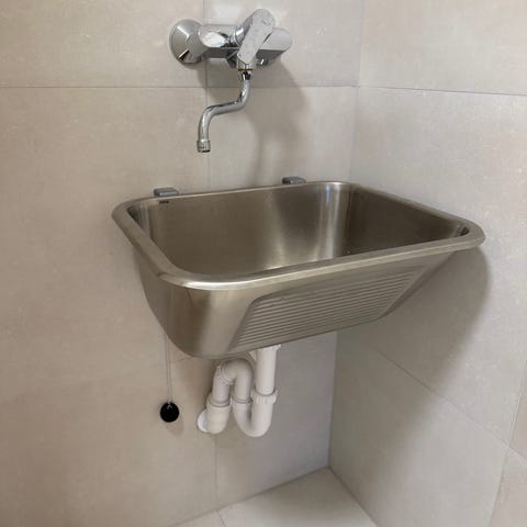 Utformet i rustfritt stål, og er perfekt til bruk i bl.a. vaskerom.