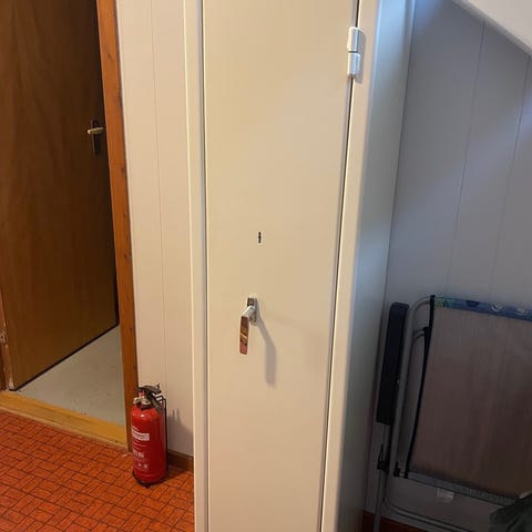 Reservert. Bjørke våpenskap, lite brukt. Mål 150 cm høy 50 cm bred og 40cm dyp. Må hentes