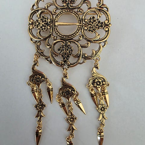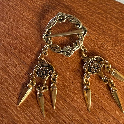 Flott beltestøl til Løkenbunad med vakre detaljer og to mellomøsken. Stølen er laget i forgylt sølv og måler 31 mm i bredde og 40,9 mm i høyde. Aldri brukt. ☺️