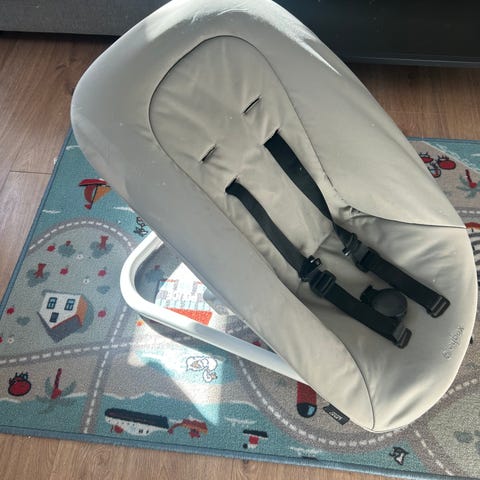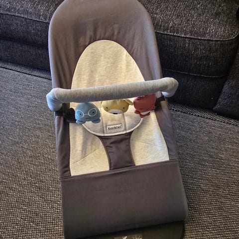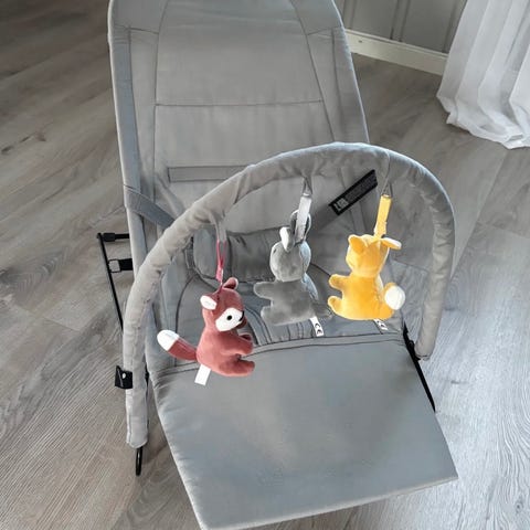 Vippestol fra Beemoo. Perfekt når du vil ha hendene frie til annet, samtidig som barnet ditt hviler eller leker trygt.