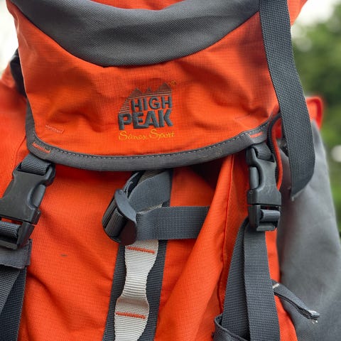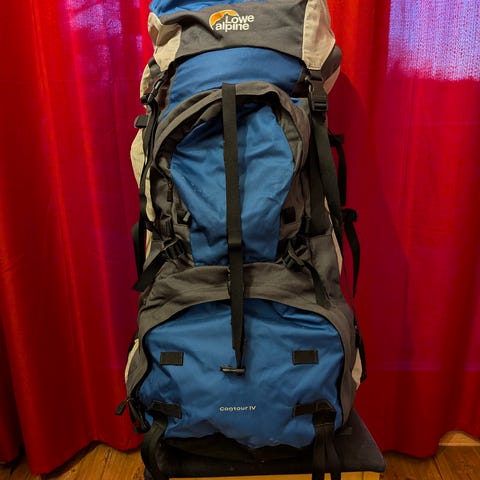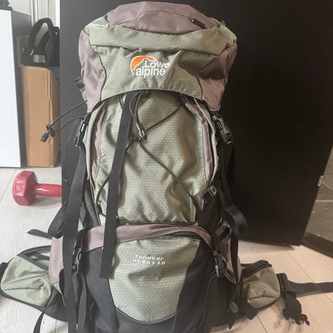 Den kan snurpes/lukkes to steder i topp, avhengig av hvor mye den er fyllt med. Masse stropper til å justere og feste liggeunderlag, m.m.