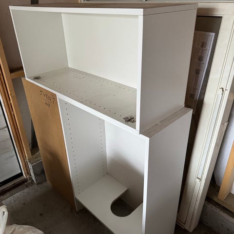 Nedsenkbar vask i rustfritt stål med innbyggingsplate i trelook. Vasken er innfelt i platen og har avløp med tilkobling på baksiden. Egnet for montering i bod, kjøkken, vaskerom, garasje eller lignende der det er behov for en kompakt vaskeløsning. Leveres som vist på bildene, med integrert kum og bakmontert avløpsboks. Brukt kun i 3 uker i påvente av ny benkeplate på kjøkkenet. Benk: 61 cm dybde, 184 cm lengde og 3 cm tykkelse. Vasken er 40 cm bredde og 50 cm lengde.. Stått oppbevart i 5 år. Må hentes!