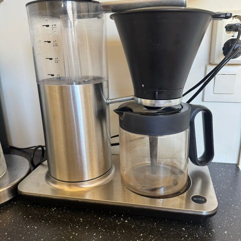 Veldig praktisk og god justering av hvor fort vannet skal trekke gjennom kaffen. Vanntanken kan også tas av og fylles, så man slipper å ha en egen beholder til det.