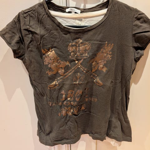 Superdry T-skjorte for dame i militærgrønn farge. T-skjorten er i bomull i str 42. Kortermet modell med rund hals og trykket Superdry-logo på brystet. Passer til hverdagsbruk alene eller under genser og jakke.