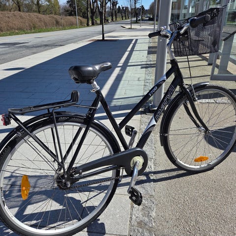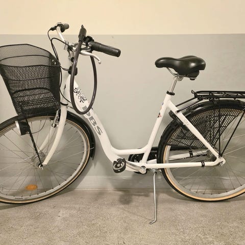 DBS bysykkel for dame med rammestrørrelse M og 28"/700c hjul. Sykkelen har lavt innsteg som gjør det enkelt å gå av og på. Utstyrt med kurv foran og bagasjebrett bak for transport av vesker eller mindre varer. Felgbremser foran, pedalbrems bak, samt navgir og kjededrift som krever lite vedlikehold. Passer til hverdagsbruk og sykling i by- og nærmiljø.