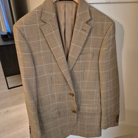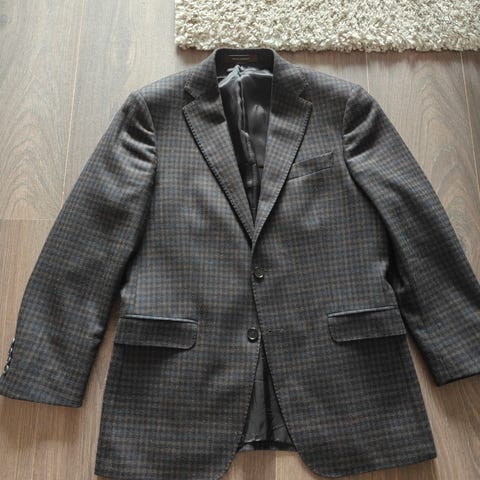 Blazeren er nesten ubrukt og fremstår i veldig god stand. Den har normal slimfit passform og US-størrelse 38, som tilsvarer EU 48. Perfekt for både dressbukser, chinos eller casual preppy-stil.