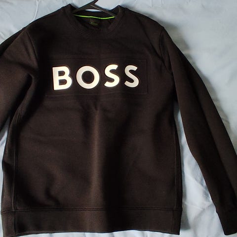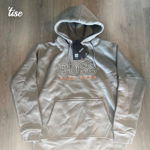 Hugo Boss hettegenser for herre i størrelse S. Genseren er svart og laget av bomull. Modellen har glidelås i front, hette med snøring og to frontlommer. Ribbekanter ved ermer og nederkant. Passer til hverdagsbruk og fritid.