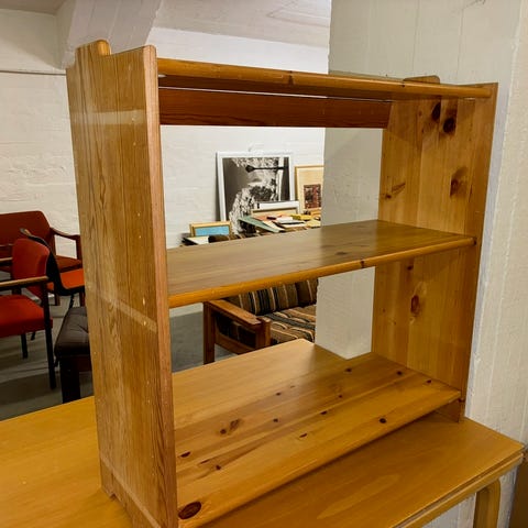 Teakfarget hylle selges som er i god stand.