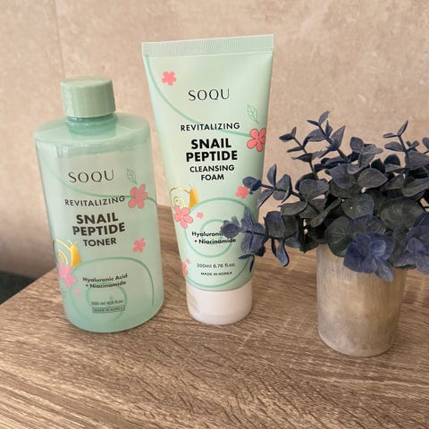 Soqu Rice Essence Pad hudpleiepakke med risekstrakt. Settet inneholder blant annet fuktgivende og utjevnende Rice Essence Pads i boks, samt tilhørende produkter fra samme Rice-serie som toner og rens. Produktene er beregnet for ansiktshud og inneholder blant annet risekstrakt. Emballasjen er merket med FSC-sertifisering og trykket med soyablekk. Egner seg til daglig hudpleierutine for ansikt.