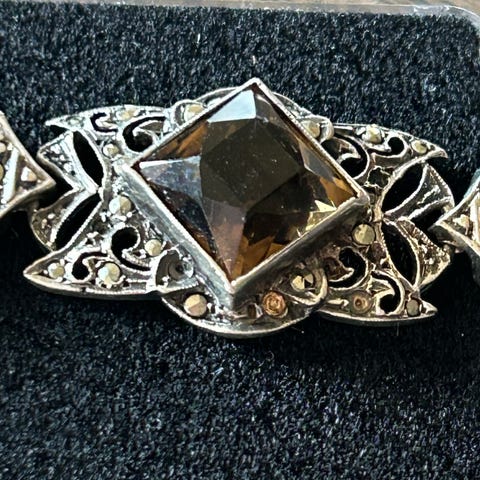 Meget pent og eksklusivt armbånd i sølv og gullbelagt. Swarovskikrystall. Båndet kan reguleres.