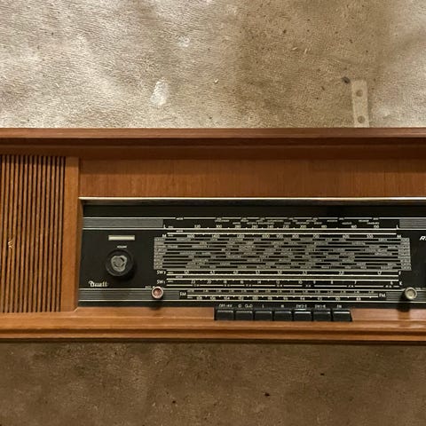 Selger en hel og pen Radionette duett Hi-fi radio. Noe bleket på toppen, Radioen virker som den skal og gir god lyd.