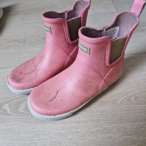 Tretorn gummistøvler for barn, størrelse 32. Modellen er i ankelhøy slip-on-variant med hempe bak for enklere av- og påkledning. Farge rosa. Såle med mønster for bedre grep på vått underlag. Passer til jente i ca. størrelse 32 til bruk i regnvær og på fuktig underlag.