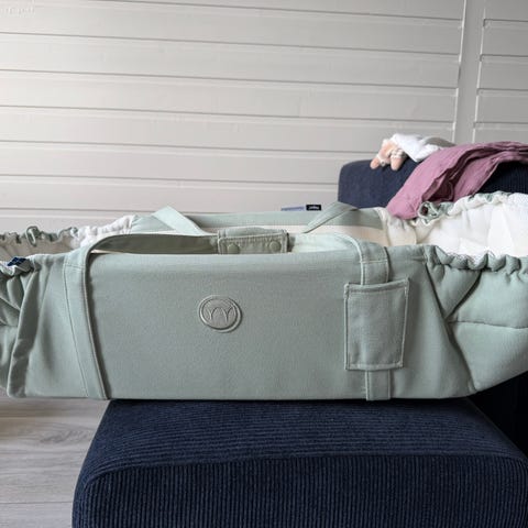 RESERVERT! Selger et pent brukt Najell Babynest SleepCarrier X i fargen agave green (1599,-). Fra røyk- og dyrefritt hjem. Det følger i tillegg til nestet med Najell bunndeksel for SleepCarrier (249,-), samt Najell SleepCarrier vanntett madrasstrekk i fargen mercury grey (399,-). Babynest og laken er støvsugd og vasket uten skyllemiddel og kun med parfymefritt vaskemiddel. Alt selges samlet hbo. 1650.