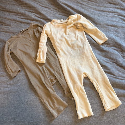 Alt er pent brukt. Ulltrøyen har gulnet, men ingen flekker som jeg kan se.