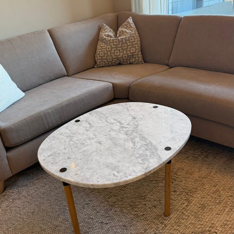 Bolia mix ovalt sofabord 66x41x42 jura grey marmor, oljet eik