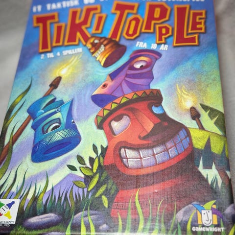 Tiki Topple brettspill. Et taktisk og strategisk spill der spillerne konkurrerer om å få sine tiki-figurer til toppen av totempælen ved hjelp av kort og brikker. Spillet passer for flere spillere og inneholder spillebrett, tiki-brikker og kort med ulike handlinger. Egnet som familiespill og for spillkvelder med venner.