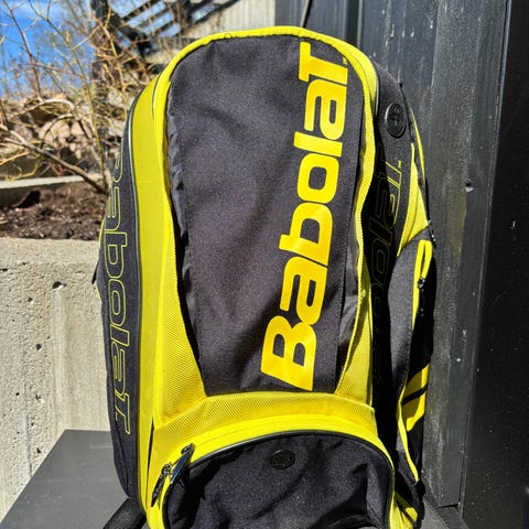 Babolat tennissekk i svart med gule detaljer. Sekken har flere glidelåslommer for oppbevaring av tennisutstyr som racket, baller, drikkeflaske og klær. Polstrede skulderstropper og ryggpanel gir bedre bærekomfort. Egnet for bruk til trening, kamp og annen racketsport der man trenger praktisk transport av utstyr.