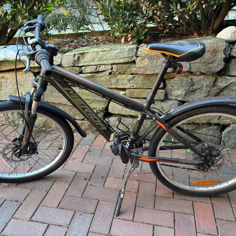 Sykkelen er svært lite brukt, men har noen små rustflekker på styret (se bilde)