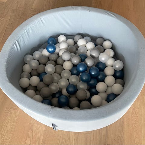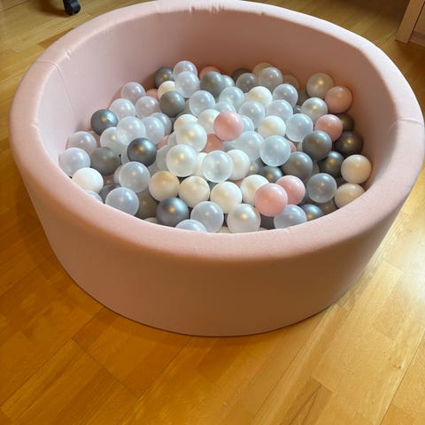 Fra Jollyroom. Rund ballbinge i mykt materiale i rosa farge. Leveres med plastballer i fargene hvit, rosa og grå. Egnet for små barn til lek og motorisk aktivitet innendørs. Plasseres direkte på gulv i lekeområde eller barnerom.