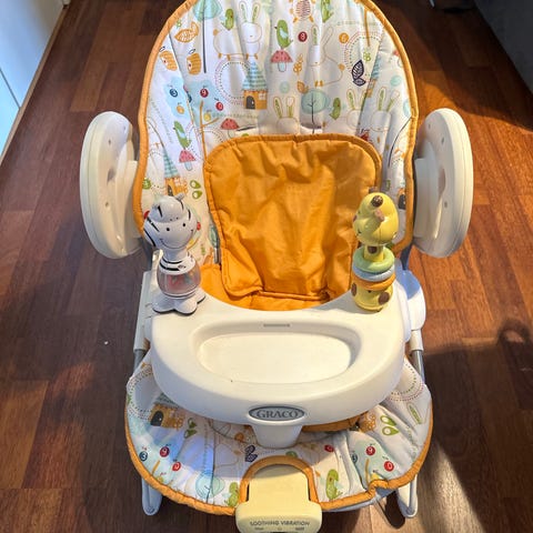 Pent brukt vippestol som kan spille musikk og gynge automatisk