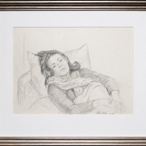Håkon Bleken Hedda drømmer (Hedda Gabler)opplag 160 størrelse på trykk 73×53 bildet er ikke innrammet.bildet er singnert nede til høyre Håkon Bleken.