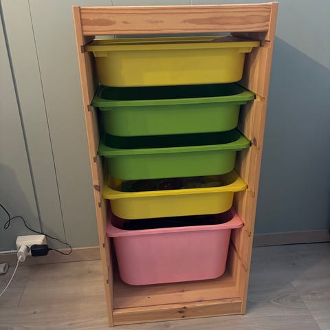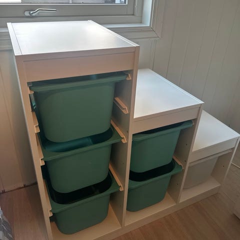 Nettingkurver gir god oversikt og mer plass til å organisere leker. Det er lett å se hva som er inni, så datteren min finner tingene sine mye enklere.