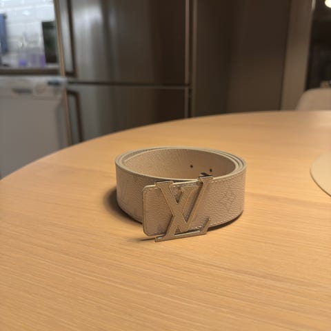 Kjøpt i Louis Vuitton butikk i London. Kvittering følger med. Beltet er i veldig god stand og lite brukt. Klassisk LV monogram med sølvfarget LV-spenne.