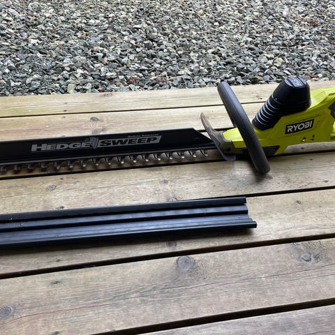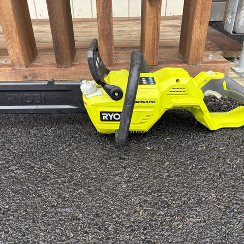 Ryobi elektrisk kjedesag med 35 cm (14") sverd og 1800W motor. 220V. Kjedesagen har kjedestrammer og oljetank for kjedesmøring. Brukt noen få minutter, orginalolje som er på tanken, ikke mye som er brukt. Fikk i gave, har flere, derfor har den bare blitt stående. Se bilder for tilstand. Kan sendes på kjøpers regning og risiko. Hvis den skal sendes, må olje tappes av.