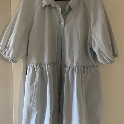 Shein sommerkjole for dame i størrelse L. Kjolen er blå med småblomstret mønster.Den har kort erm, V-utringning og knyting i livet. Skjørtet er lett utsvinget med volangkant nederst. Passer som lett sommerkjole til hverdagsbruk eller fritid.