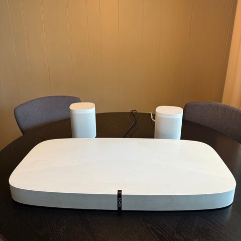 Selger en Sonos Playbase som er pent brukt og fungerer helt perfekt. Dette er en kraftig lydplanke som gir fyldig og klar TV-lyd, og som enkelt kan kobles til resten av Sonos-systemet ditt.