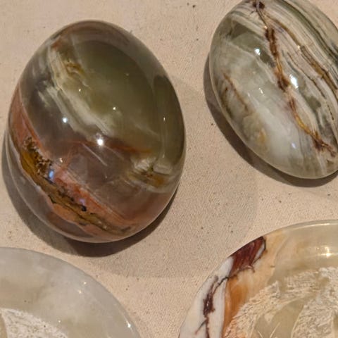 Stor og vakker eggformet Agat med vakre naturlige farger og varme jordtoner. Polert stein som passer fint som pynt til Påske eller for samlere.