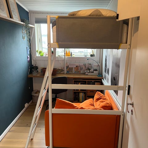 IKEA loftseng med skrivepult og hyller hvit