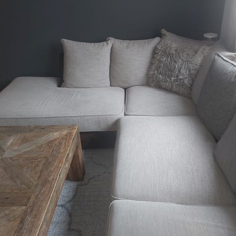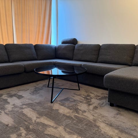 Boston hjørnesofa fra Bohus i grå melert farge. Sorte lave ben. Alle puter har avtagbare trekk og kan vaskes.
