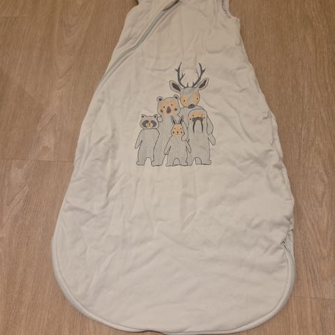H&M sovepose for barn i størrelse 86 -98, dvs 1 - 3 år. Soveposen er laget i bomull og har et flerfarget motiv med dyr på forsiden. Erm- og hettefri modell med god lengde og elastisk avslutning nederst. Passer til bruk i seng eller vogn for små barn innenfor tilsvarende størrelsesintervall.