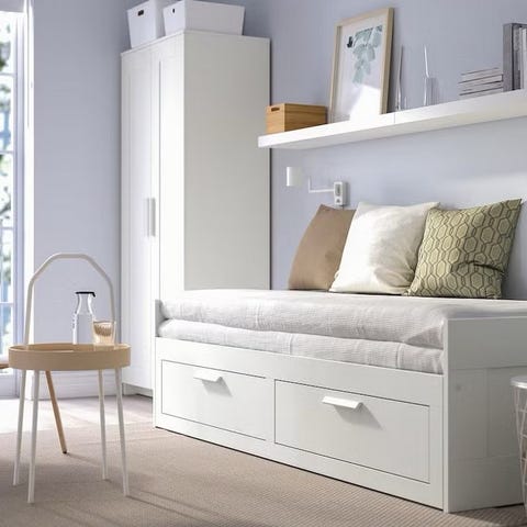 IKEA Brimnes sengenrosk selges rimelig! Den ene platen i ene skuffen er en sprekk i, men skuff fungerer. Ellers helg og fin. Brukt som gjesteseng.