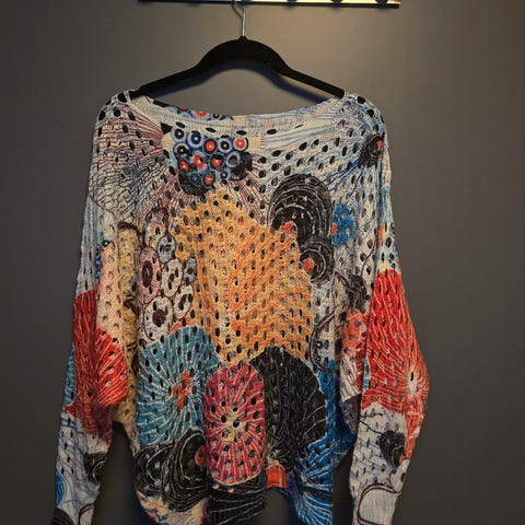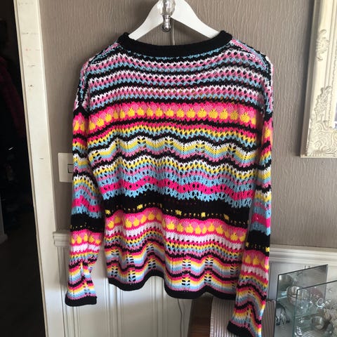 Missoni poncho i one size. Den er lyserosa med bølgemønster i ulike pastell- og sterke farger. Plagget er strikket i 100 % bomull. Passer til hverdagsbruk eller over andre plagg. Laget i Italia.