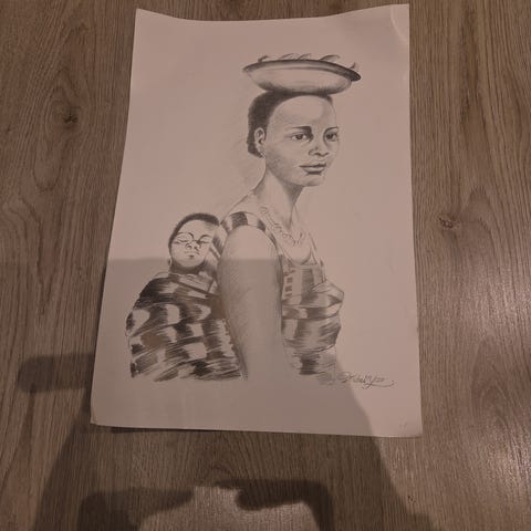 Fotografi av skulpturen Første sydenturen. Skulpturen laget av kjeramiker Per Sverre Dahl. Fotograf Esten A Borgos. Ytre mål ark ca 33cmx48 cm. God stand, litt merker på arket til sidene for selve foto. Prisforslag mottas