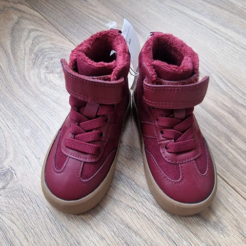 Ecco Soft 60 barnesko i størrelse 28 for unisex. Skoene er i rødbrun farge med overdel i semsket skinn og godt varmt for. Modellen har snøring foran og glidelås på siden for enkel av- og påkledning. Yttersålen er i gummi med mønster for godt grep.