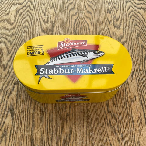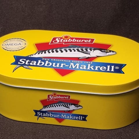 Stabbur makrell i tomat metall matboks tom 150,- samlet