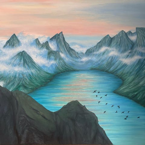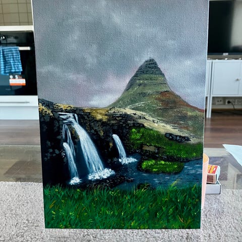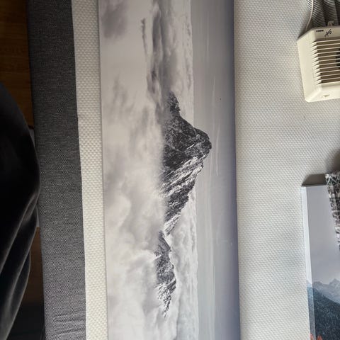 To lerretsbilder med naturmotiver. Det ene bildet viser Seljalandfoss andre viser Reynisfajara svart vulkan strand. Bildene er trykket på lerret og spent opp på treramme, klare til oppheng på vegg. Egner seg som veggdekor i for eksempel stue, gang eller kontor. Størrelse er ikke oppgitt og kan eventuelt måles ved interesse.
