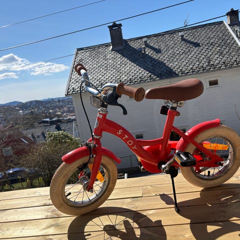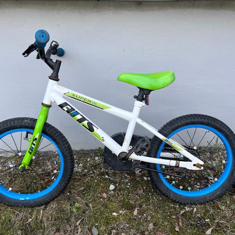 Scott Voltage JR 12 barnesykkel med 12" hjul. Sykkelen har grønn ramme med blå detaljer, rette styreholker med håndbremse foran og enkel girfri drivlinje. Kjedet er delvis skjermet av kjedekasse. Setet er polstret og justerbart i høyden. Passer som første pedalsykkel til barn som trenger en liten og lett håndterbar sykkel med 12-tommers hjul.