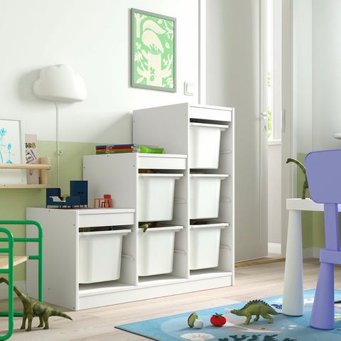 Praktisk og fint BERGIG bokstativ fra IKEA i hvit farge selges. Perfekt til barnerommet for oppbevaring og fremvisning av bøker, slik at barna enkelt kan se og nå bøkene selv.