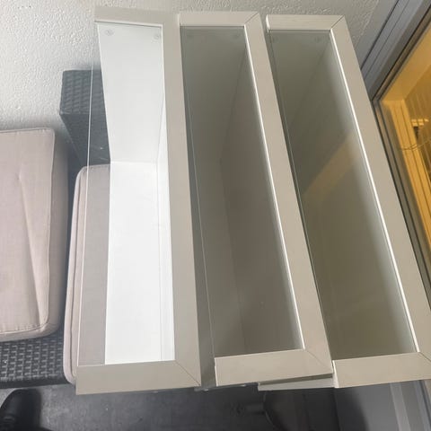 Pent bruke Komplement hyller fra IKEA Pax systemer. Fargen er hvit. Selges for 100 pr stk.